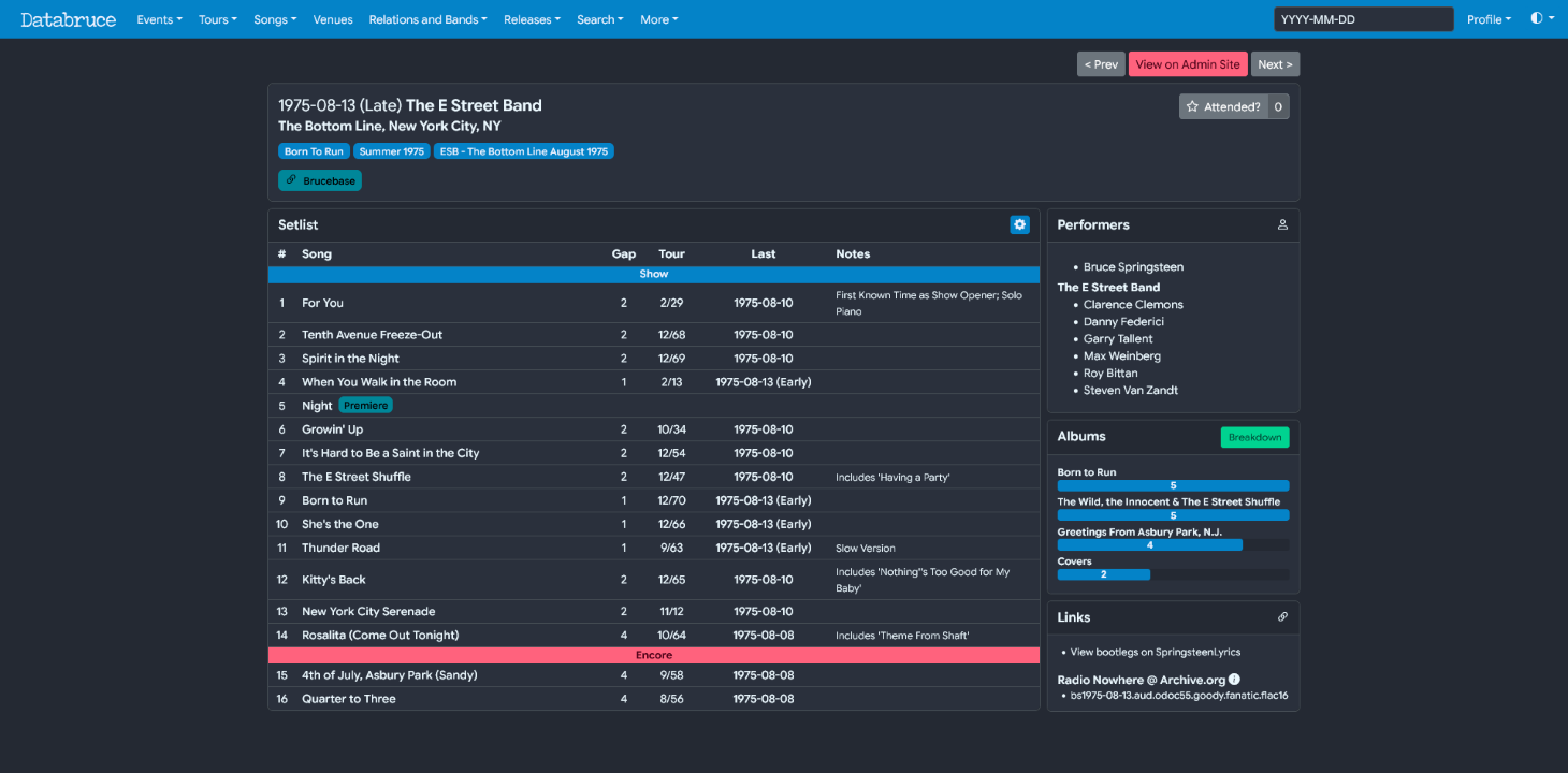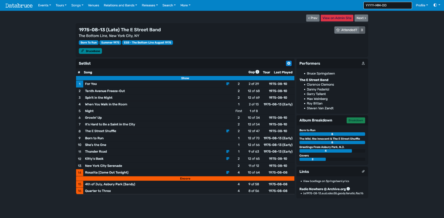 The setlist tables also now show the notes as part of the actual table rows. I originally had these hidden by a button, but those didn’t adapt well to small screens. Likely due to the issue above with the table going off screen, but it’s anyone’s guess.