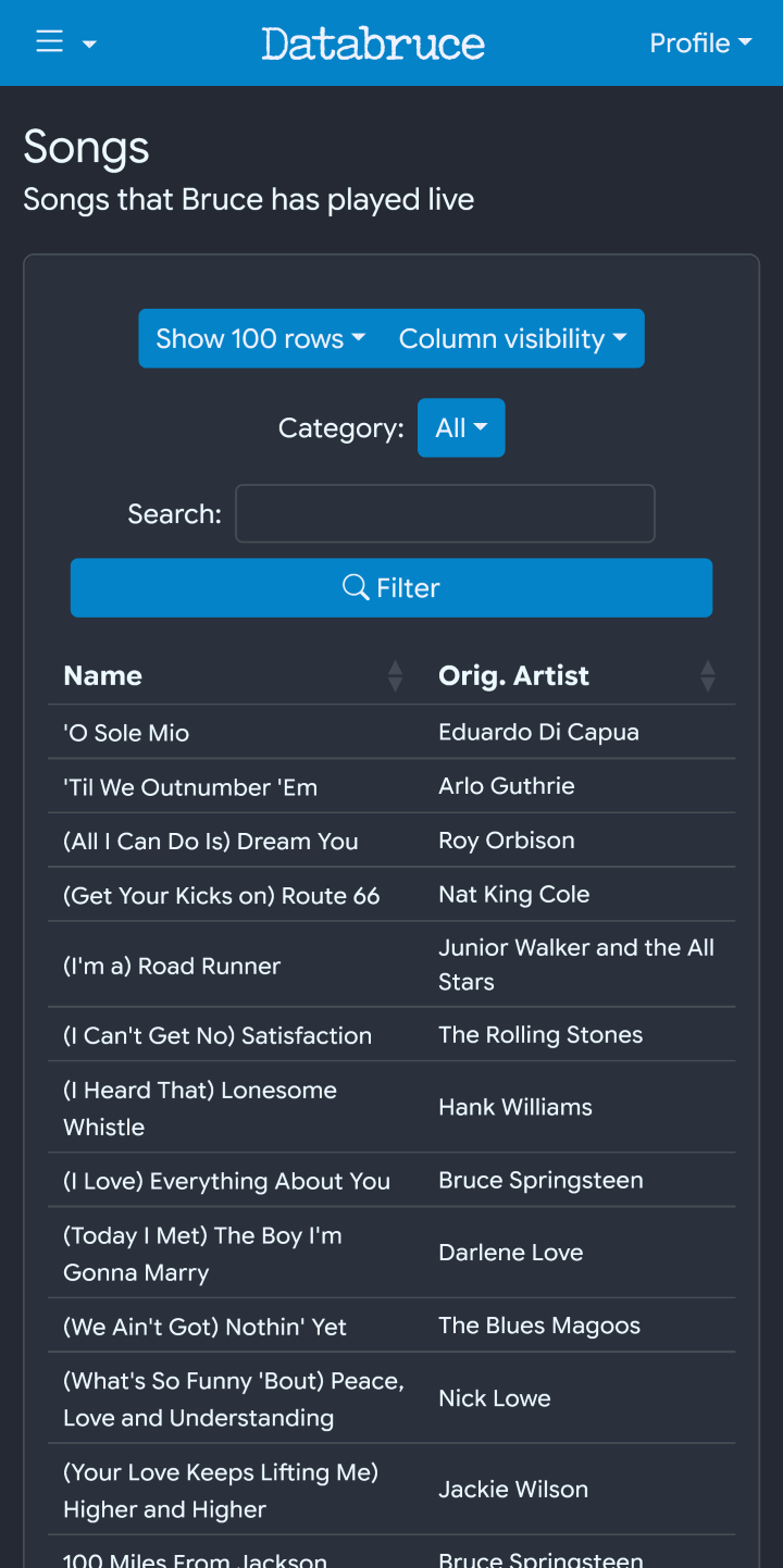 Because of these problems, I removed the child rows and simply adapted the tables to only show the most important rows on mobile/small screens. If I can find a way to have the child rows, without requiring the expensive redraw, I’ll revisit this in the future.